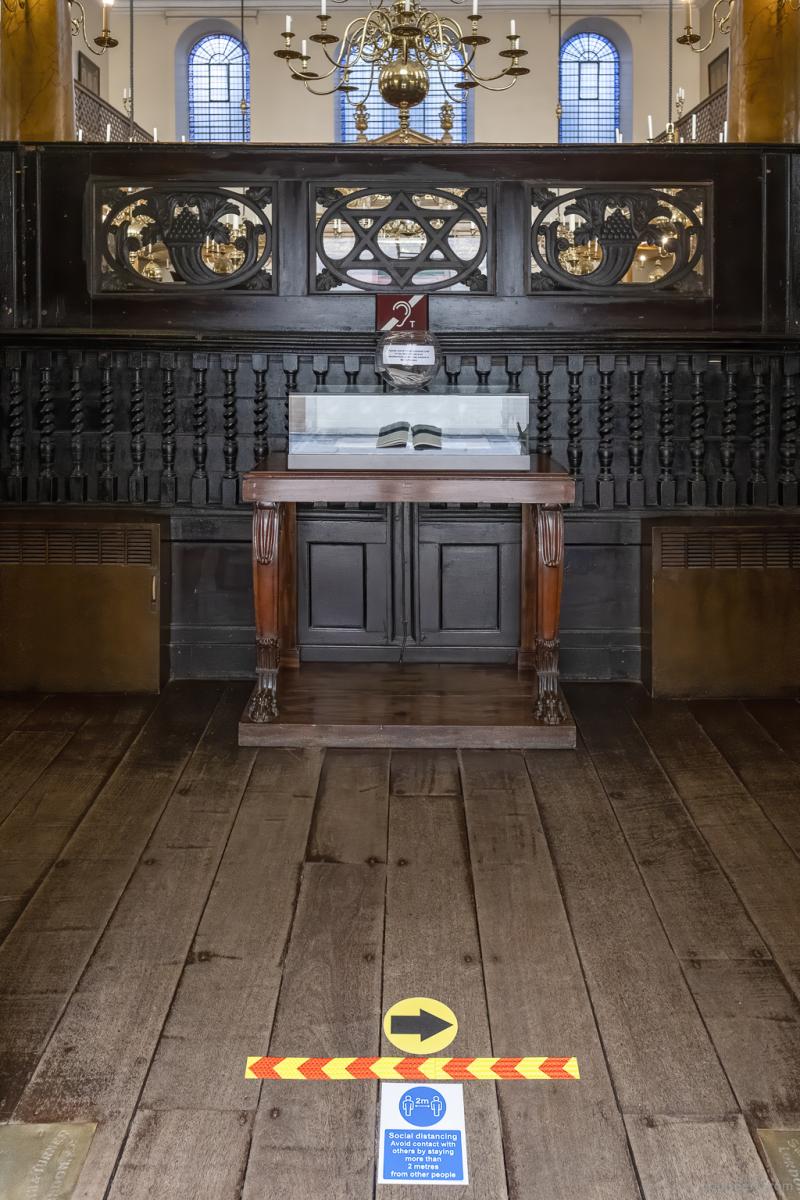 Bevis Marks includes some interesting architectural features such as the special seating area for the leaders of the congregation, which must also comply with social distancing measures, of course.